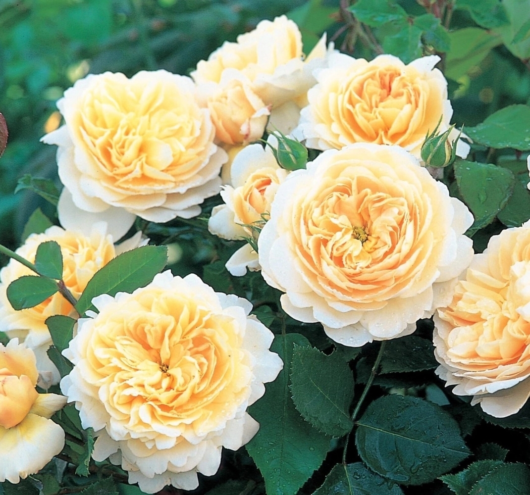 Очень устойчивая и обильноцветущая роза, с крупными, розетковидными цветками, в начале цветения слегка чашевидными, позже лепестки отгибаются вниз. Цвет нежно-абрикосовый, бледнеющий до кремового к краям. Цветет очень обильно, крупными кистями на концах слегка изогнутых побегов. Приятно пахнет чайной розой.
