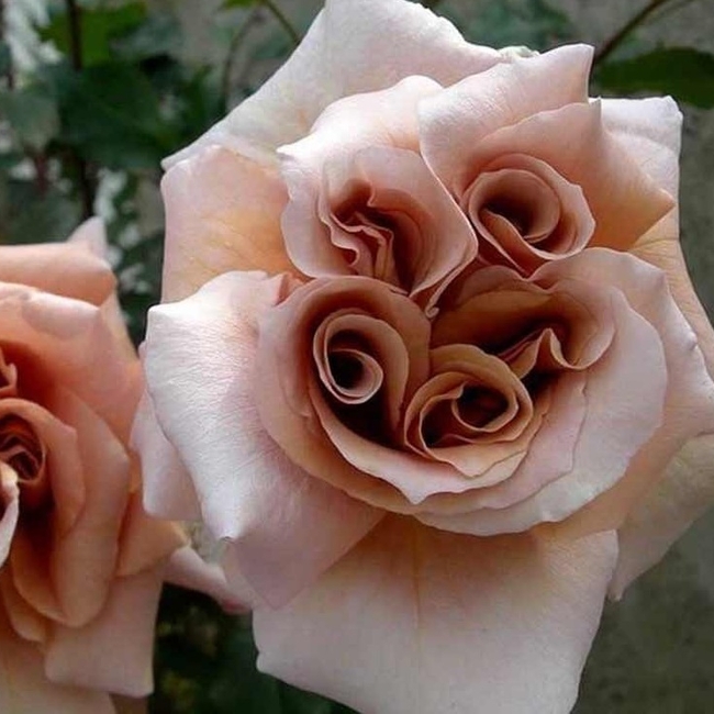 Ее фарфоровые лепестки украшены нежнейшими бликами кофейных оттенков, которые ближе к осени становятся более интенсивными, насыщаясь коричневыми всплесками цвета. Классический бокал этой чайно-гибридной розы раскрывается в замечательный махровый цветок в котором, причудливым образом скрученные лепестки, создают настоящее пенное волшебство.