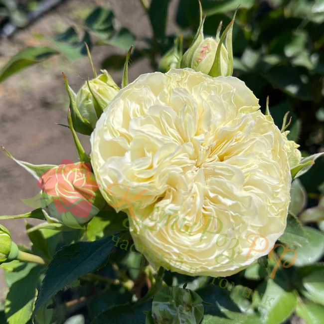 Цвет данного сорта свадебный, белый с фисташковой подложкой. Пионовидные бутоны чашевидной формы насчитывают около 100 лепестков. Цветение продолжительное, цветки держатся на кусте не менее15 дней. Эта садовая роза-настоящая классика в форме и цвете.