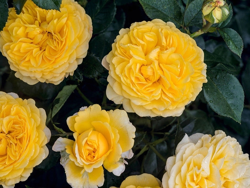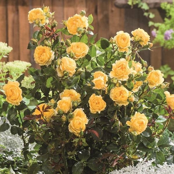 Цветки диаметром 6-8 см, густомахровые, ностальгические, золотисто-жёлтые, в соцветиях, очень стойкие, распускаются постоянно, обеспечивая золотое сияние в течение многих недель. Окраска цветков очень стабильная, даже при сильном солнечном освещении. Цветки самоочищающиеся. Цветение обильное.