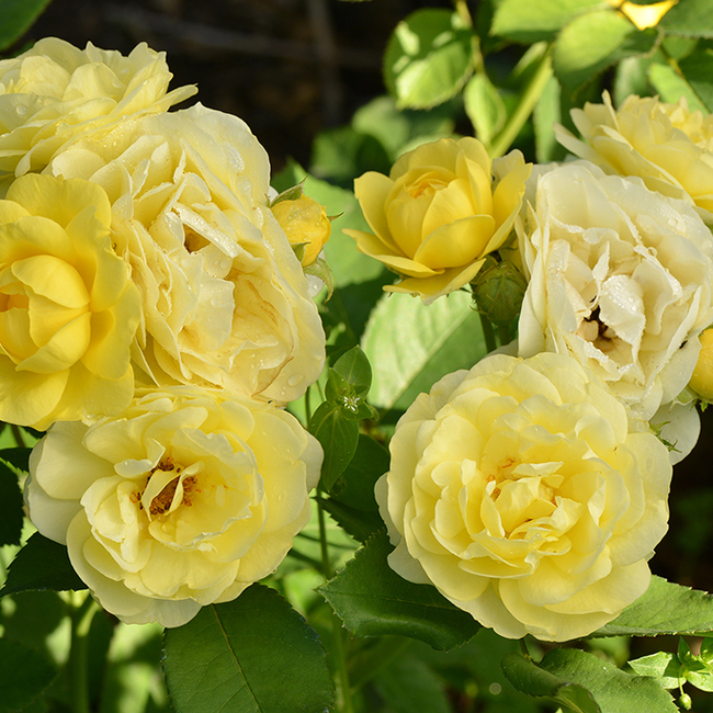 Один из лучших сортов бордюрной розы с очень обильным цветением. Цветок лимонно-желтый, чашевидный, махровый, 40-50 лепестков, диаметром 6-8 см, со временем становится всё светлее, обладает насыщенным ароматом. Цветение обильное, продолжительное с июня по октябрь. Куст компактный, густой, высотой 50-70 см, шириной 50 см, практически не имеет шипов. Листья зеленые, глянцевые, плотные.