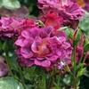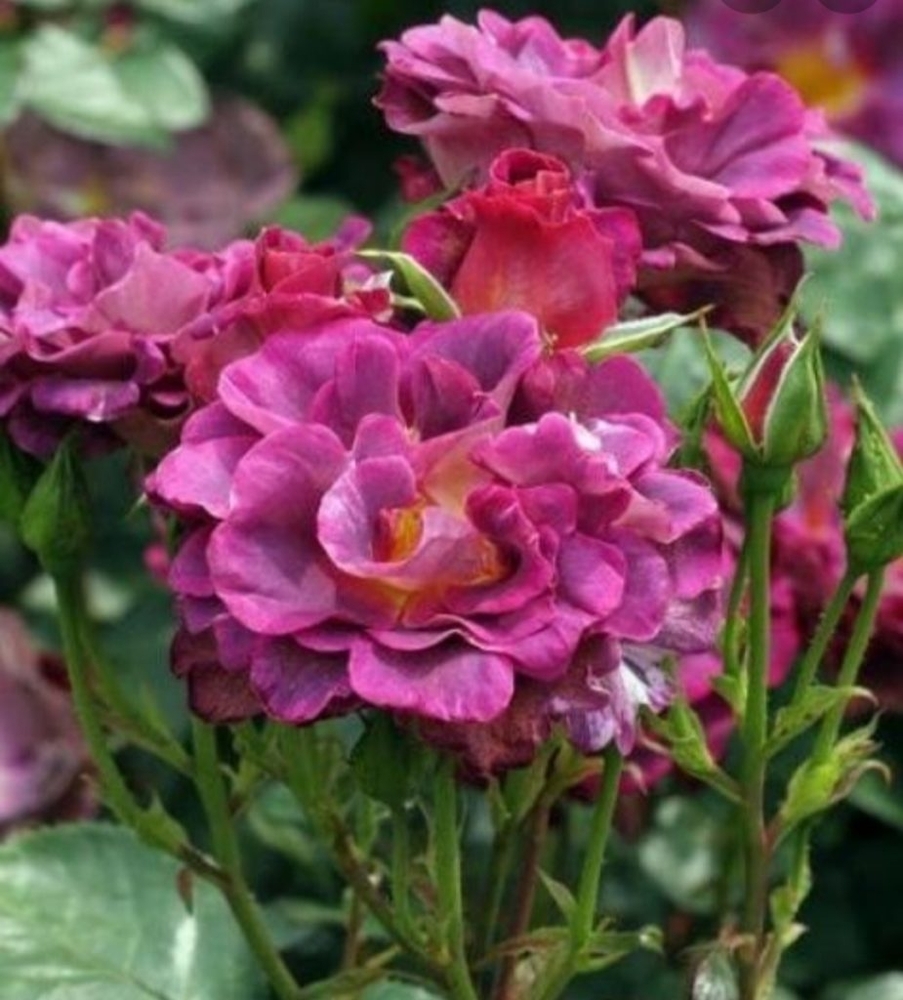 Лепестки лиловые с одной стороны и светлые с изнанки. Цветет полу-махровыми душистыми цветами, собранными в крупные соцветия, в роспуске показывает серединку с ярко-желтыми тычинками. Кусты прямостоячие с крупными темно-зелеными кожистыми листьями.