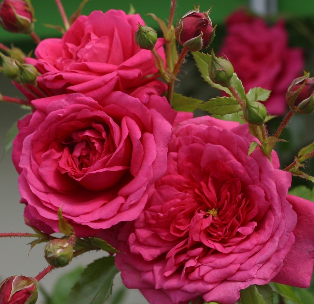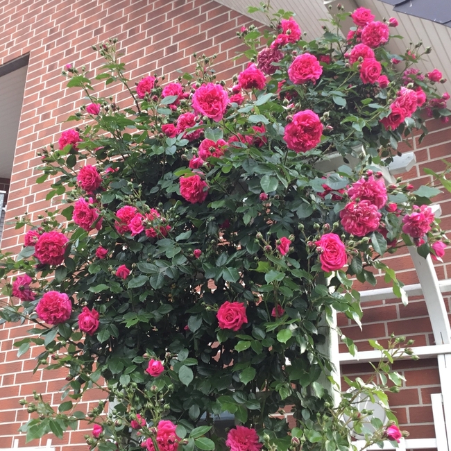 Сорт, очень устойчивый к заболеваниям, с прекрасным ароматом. Цветки ярко-розовые, густомахровые, в кистях по 6-8 шт. Листва темно-зеленая, густая, блестящая, средних размеров. Аромат очень сильный, фруктовый. Куст прямостоячий, ветвистый, до 2 м.