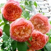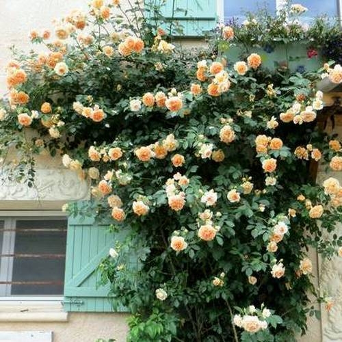 У этой розы очень крупные (12-13 см) цветки в старинном стиле, настолько густомахровые, что слегка поникают (это достоинство, так как в них можно заглянуть снизу). Появляются по одному или в небольших кистях на длинных побегах. Цветки абрикосовые с более темным основанием и кремовой оборотной стороной лепестков. Эта великолепная комбинация цветков дополняется насыщенным фруктовым ароматом.