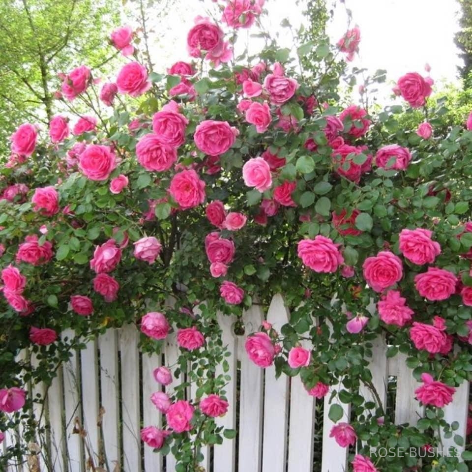 Одна из лучших плетистых роз для небольших садов. У нее огромные цветки, и куст не вырастает слишком высоким. Цветки яркие, насыщенно-розовые или вишнево-красные, бледнее к краям цветка, и иногда с пурпурным оттенком в центре. Оборотная сторона лепестков немного бледнее и более серебристая. Цветки чашевидные, густомахровые.
