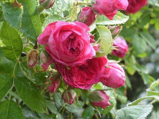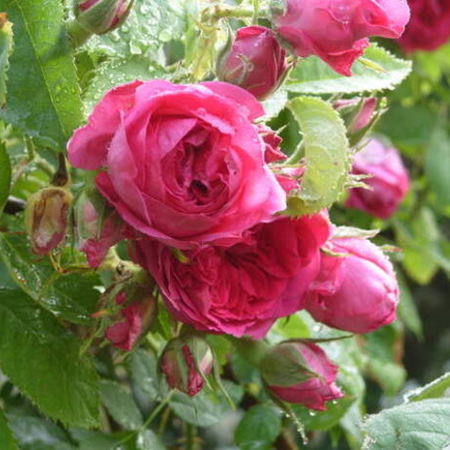Современная плетистая роза селекции Никитского ботанического сада. Цветы старинной чашевидной формы, густомахровые, душистые. Цвет ярко-малиновый. Отлично переносит жару и хорошо зимует. Куст сильный, высокий.