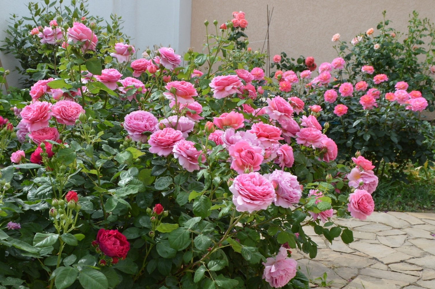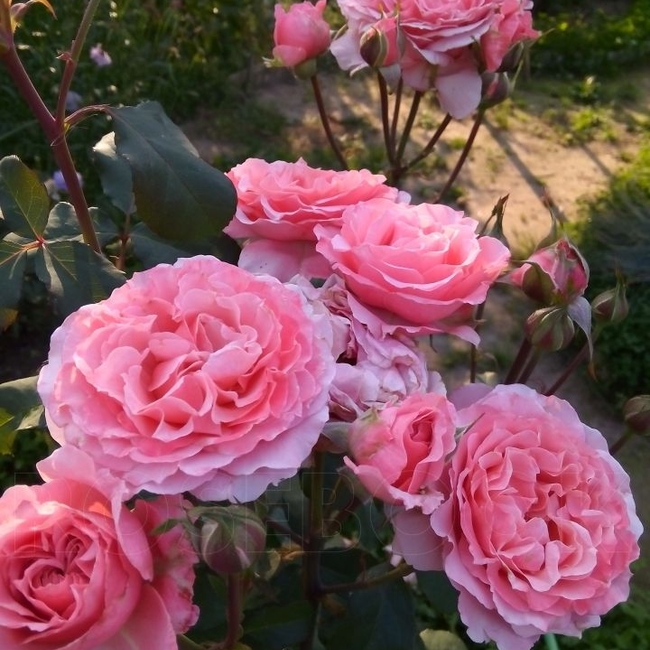 Цветы розово-кораллового цвета, густомахровые, квартированные, диаметром 8-10 см.