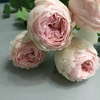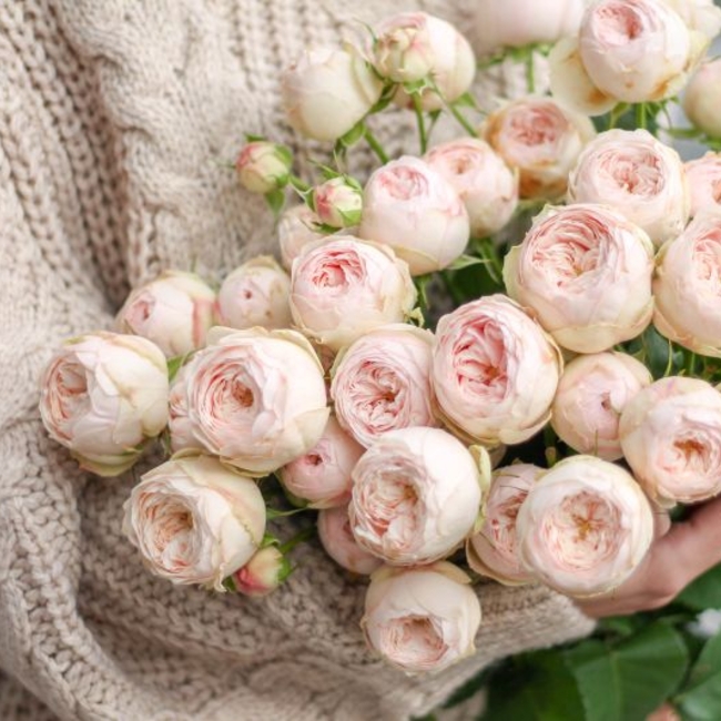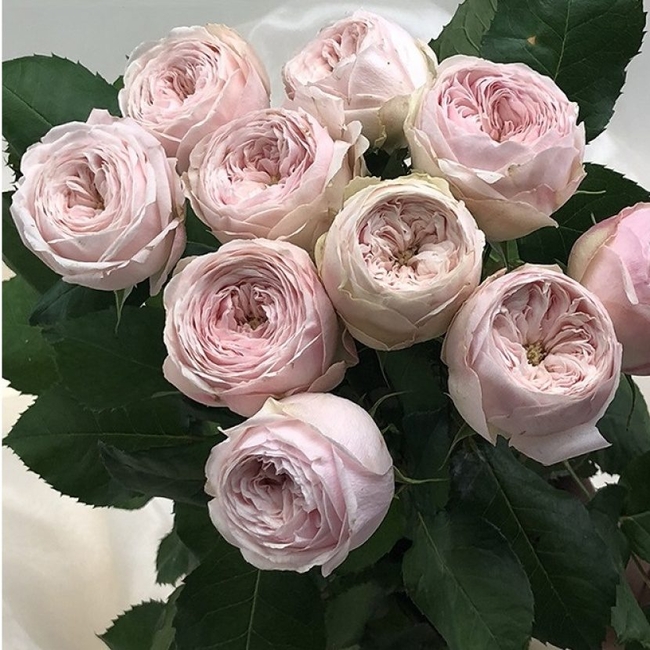 Кустовая пионовидная роза с крупными бутонами. Цветки перламутрово-розовые, с зеленоватым кроющим лепестком. Это красивый румянец и розовый цвет нескольких цветов на стебле, как у обычной спрей-розы. Нежно-розовые цветки, с красивой укладкой лепестков, в полном роспуске не показывают серединку, долго держатся на компактном кусте с темно-зеленой, глянцевой листвой.