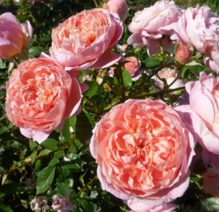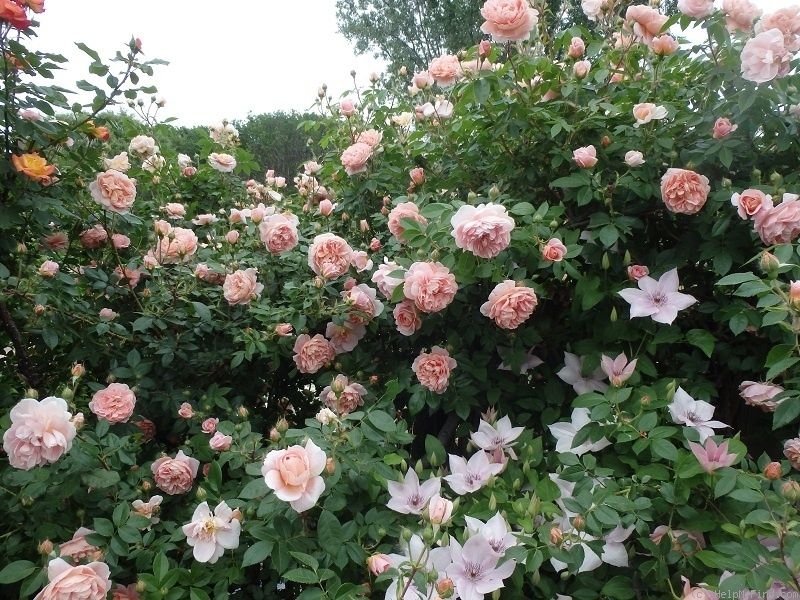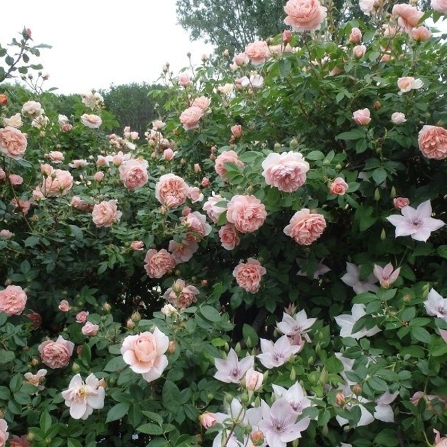 Цветки очень густомахровые, с массой коротких, широких, волнистых лепестков. В начале они чашевидные, позднее раскрываются, и цветки становятся квартированными. Они бледно-абрикосовые, с горчично-желтыми тонами в центре, но выгорающие до более светлых по краям, оборотная сторона лепестков всегда бледнее. Цветки появляются по одному или в небольших кистях, редко более трех.