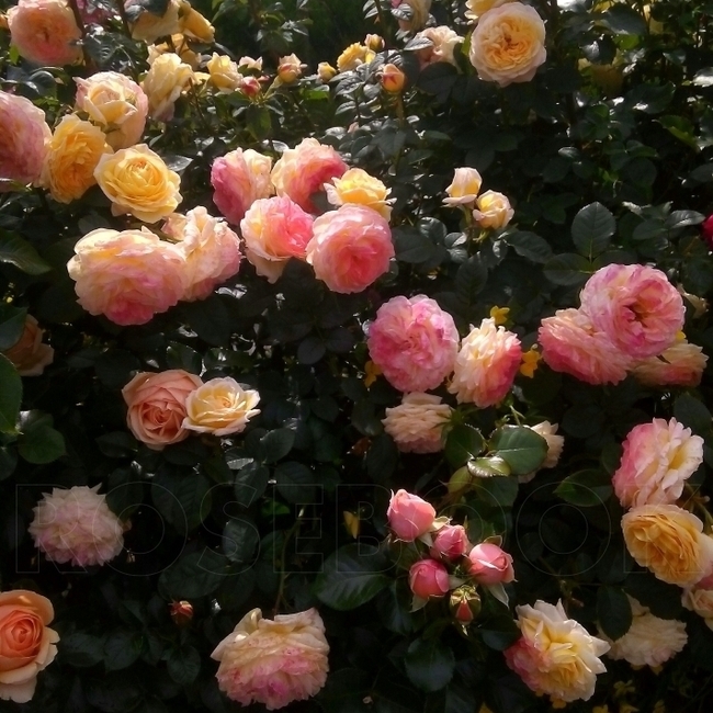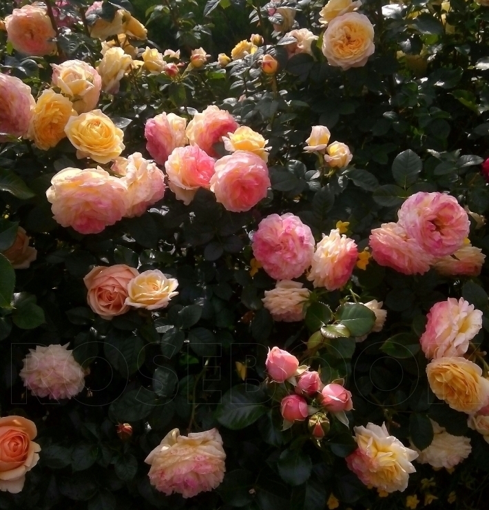 Цветки светло-желтые с вербеново-зелеными оттенками, которые с возрастом розовеют. Аромат нежный, фруктовый. Цветки крупные, 12-13 см в диаметре, шаровидные, появляются в кистях. Цветение обильное. Куст средней высоты, прямостоячий, ветвистый, достигает 100-120 см в высоту и 50-60 см в ширину.