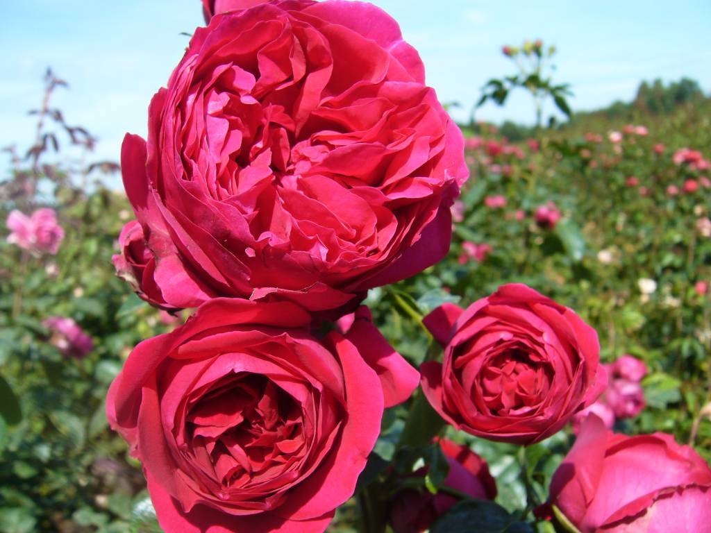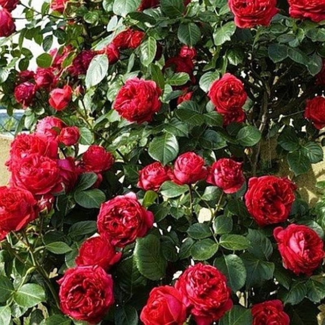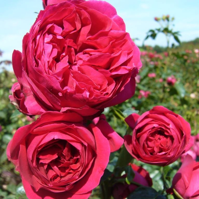 Сильный шраб или невысокая плетистая роза с густомахровыми цветками ностальгической формы. Цветки малиновые, в кистях по 3-5 шт. Аромат сильный, фруктовый. Куст ветвистый, прямостоячий, до 1,5м.