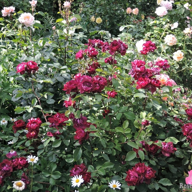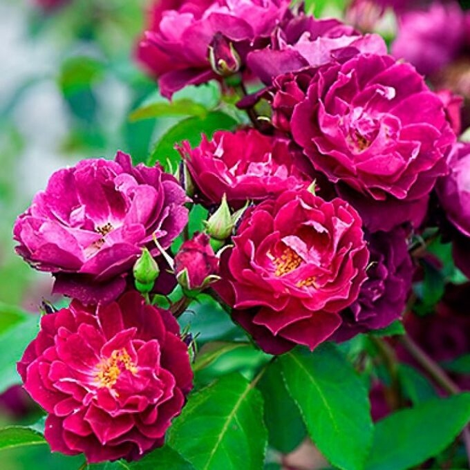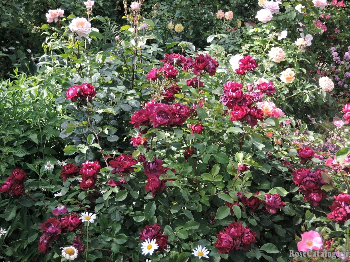 Цветки вначале малиновые, позднее становятся пурпурными с бледной оборотной стороной. Появляются в крупных кистях (обычно 15-20 шт), за ними следуют красивые ярко-алые плоды, контрастирующие с осенней листвой. Аромат не слишком насыщенный, но довольно необычный,в нем присутствуют нотки корицы и других пряностей.