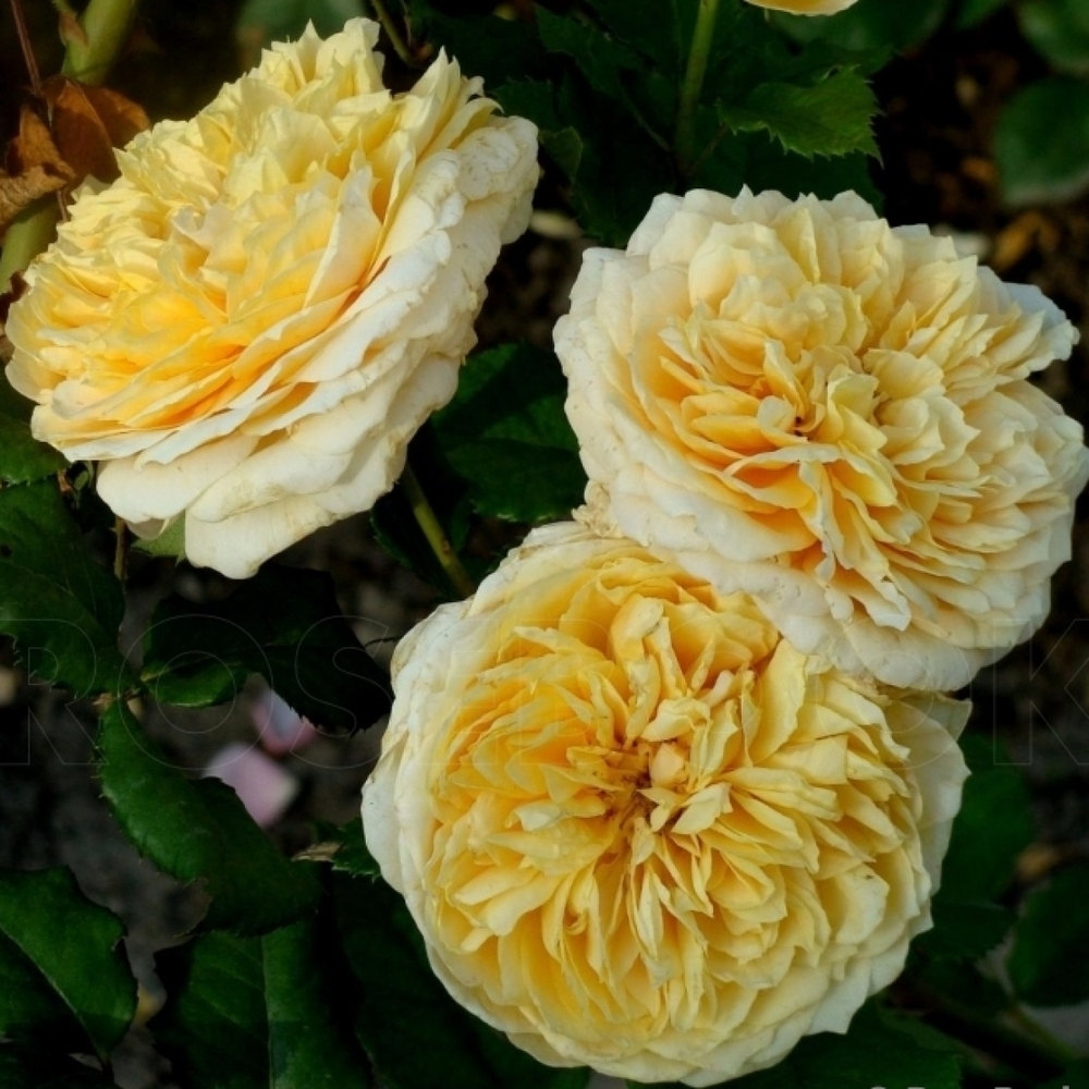 Цветок изысканной старинной формы, сочного от сливочно-жёлтого до янтарного цвета, хорошо квартированный, с отогнутыми внешними лепестками, напоминает форму чаши и состоит из 41 и более (до 100) лепестков. Средний диаметр цветка около 10 см, появляются по одному или несколько в кластерах, издают сильный аромат аниса, персика, цитрусовых, гвоздики, фиалки. Листва тёмная, глянцевая, крупная.