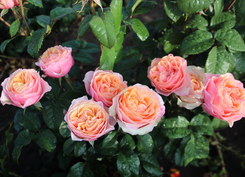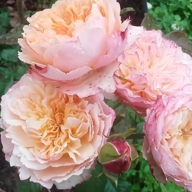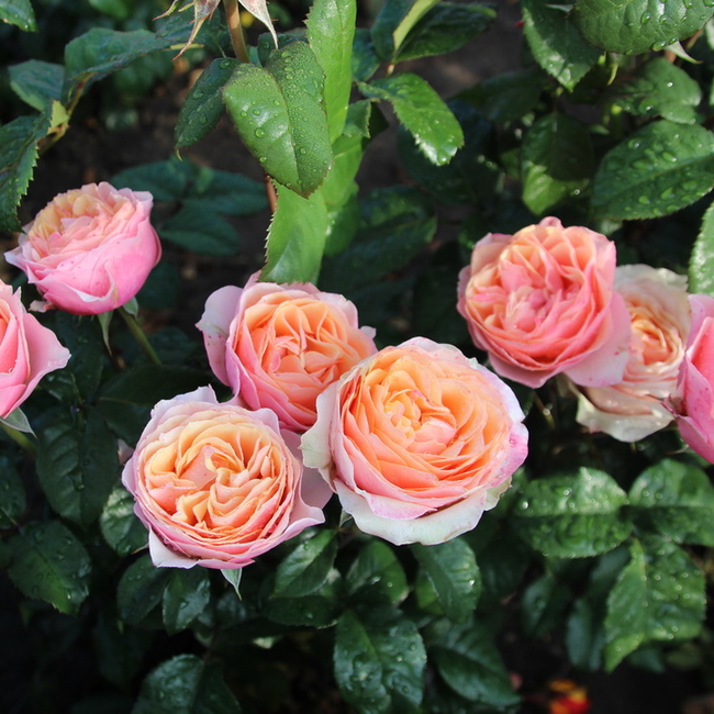 Срезочный сорт с крупными, яркими цветами, обладающими интенсивным фруктовым ароматом. Центр каждого цветка имеет цвет старого золота с персиковыми тонами и чётко отделён наружными розовыми лепестками, что создаёт впечатляющий эффект. Листья глянцевые, с зубчатыми краями.