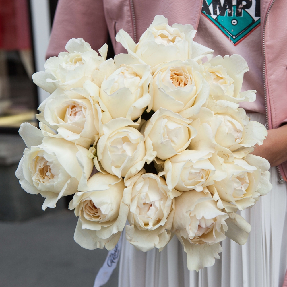 Цветок сливочный с розовым оттенком по краям лепестков. Красиво раскрывается из необычно полного бутона в розу в форме пиона с волнистыми краями. Цветок крупный 10 - 12 см в диаметре, густомахровый, с интенсивным ароматом классической розы с ноткой аниса.