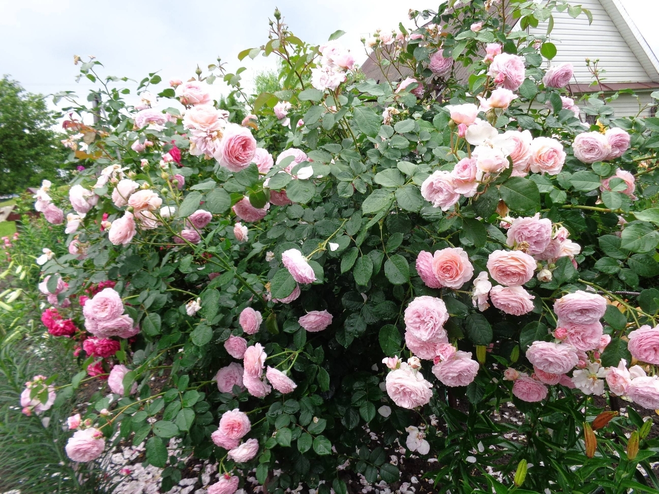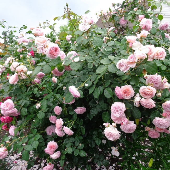 Великолепный крупный куст с длинными, изящно поникающими побегами, почти без шипов. Эта сильная и здоровая роза хорошо подходит для заднего плана миксбордера. Цветки крупные, густомахровые. Цвет теплый розовый в центре, к краям цветка переходящий в бледно-розовый. Запах розы.