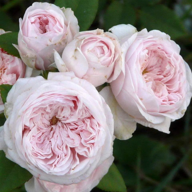 Красивая, традиционного облика английская роза – густомахровая, нежной окраски. Цветки слегка квартированные, с массой мелких лепестков. Появляются иногда по одному, но обычно в кистях до 5 шт, ветви поникают под их тяжестью. Цвет всегда темнее в центре цветка, где тени между лепестками придают цветку темный розовый оттенок.