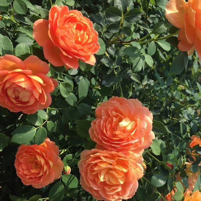 Бутоны ярко-оранжево-красные. Они распускаются в чашевидные густомахровые цветки. Каждый лепесток лососево-розовый с красиво контрастирующей золотисто-желтой изнанкой. Благодаря чашевидной форме изнанка хорошо видна, а в сердце цветка играют более глубокие тона. Аромат теплый, насыщенный, чайный с оттенками яблок и гвоздики.